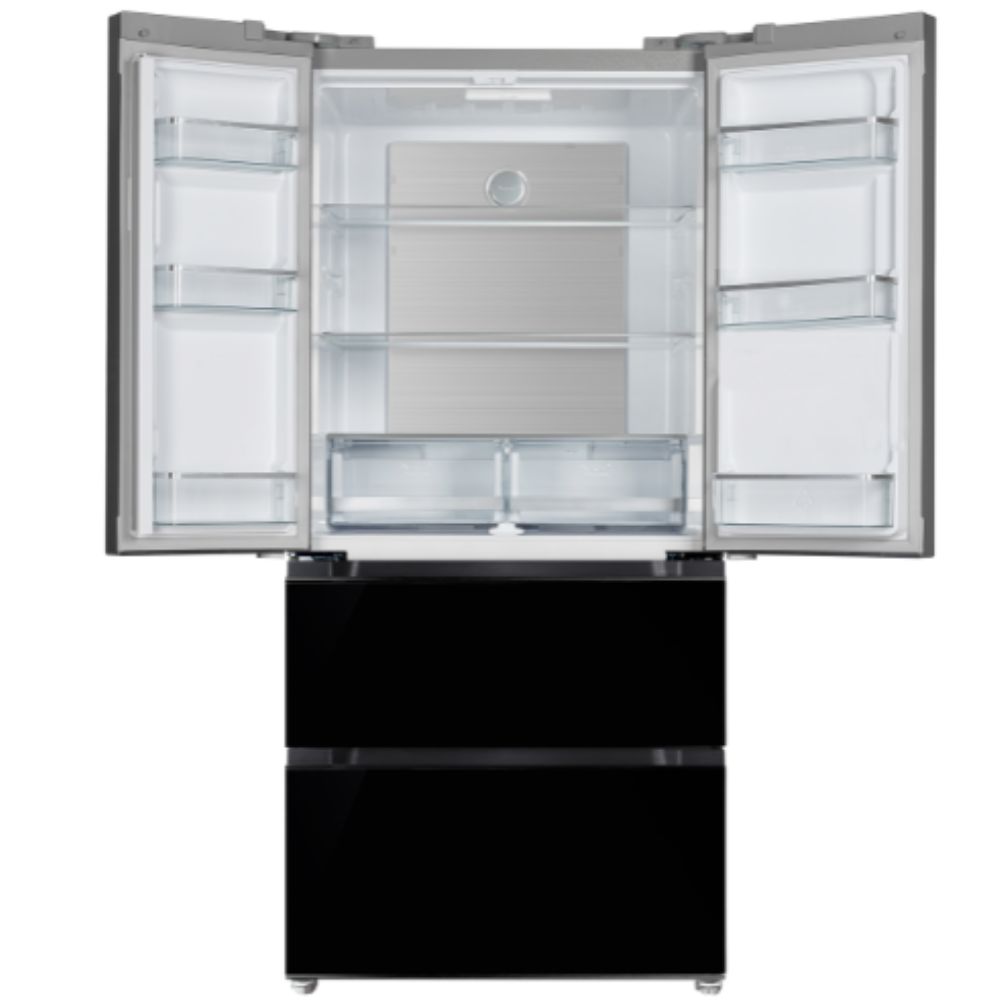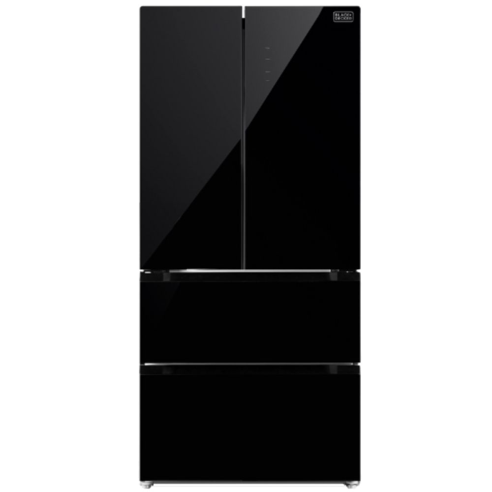 Disfruta de una combinación perfecta entre elegancia, capacidad y eficiencia energética con la nevera French Door Black+Decker Black Glass. Su acabado en vidrio negro aporta un toque moderno y sofisticado, mientras su tecnología inverter garantiza un funcionamiento silencioso y un menor consumo eléctrico.