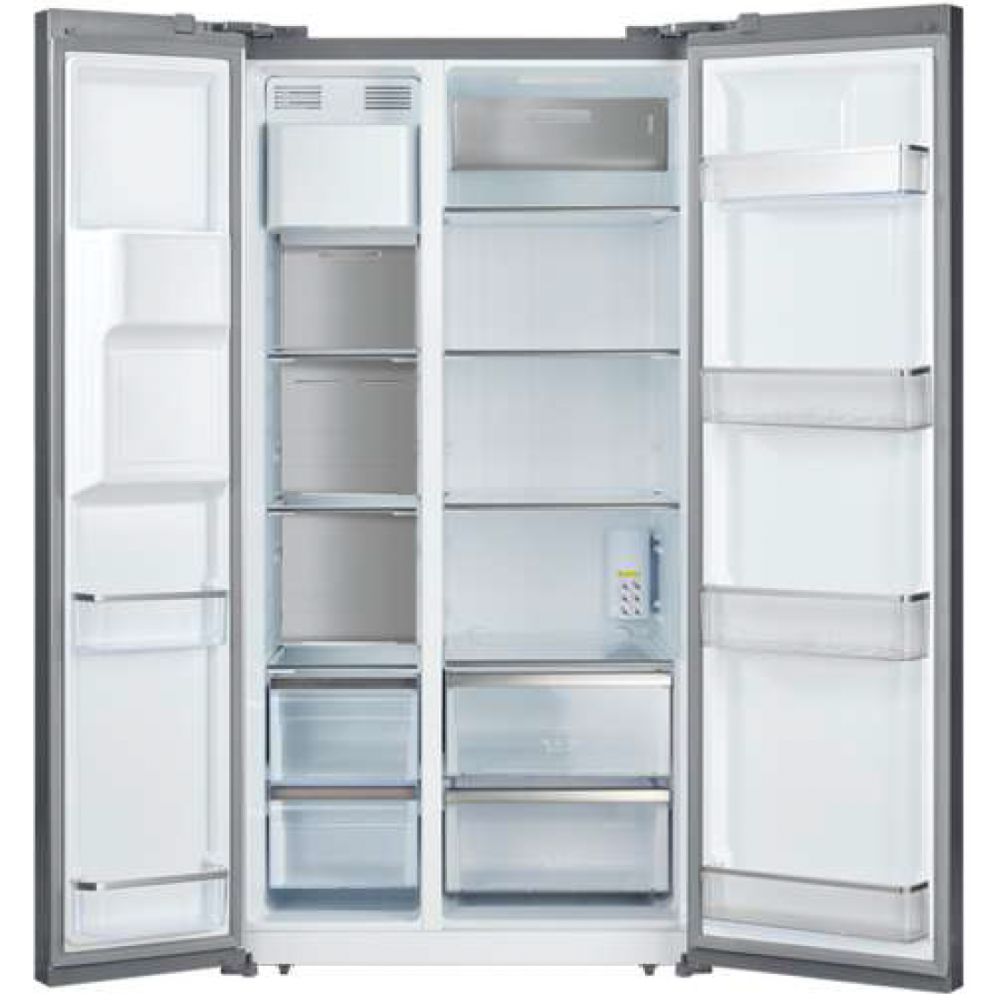 • Diseño Side by Side tipo libro con puertas verticales gemelas para fácil acceso simultáneo al refrigerador y freezer
